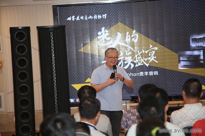 贵丰音响梁天成总经理向大家介绍了公司,介绍了产品。